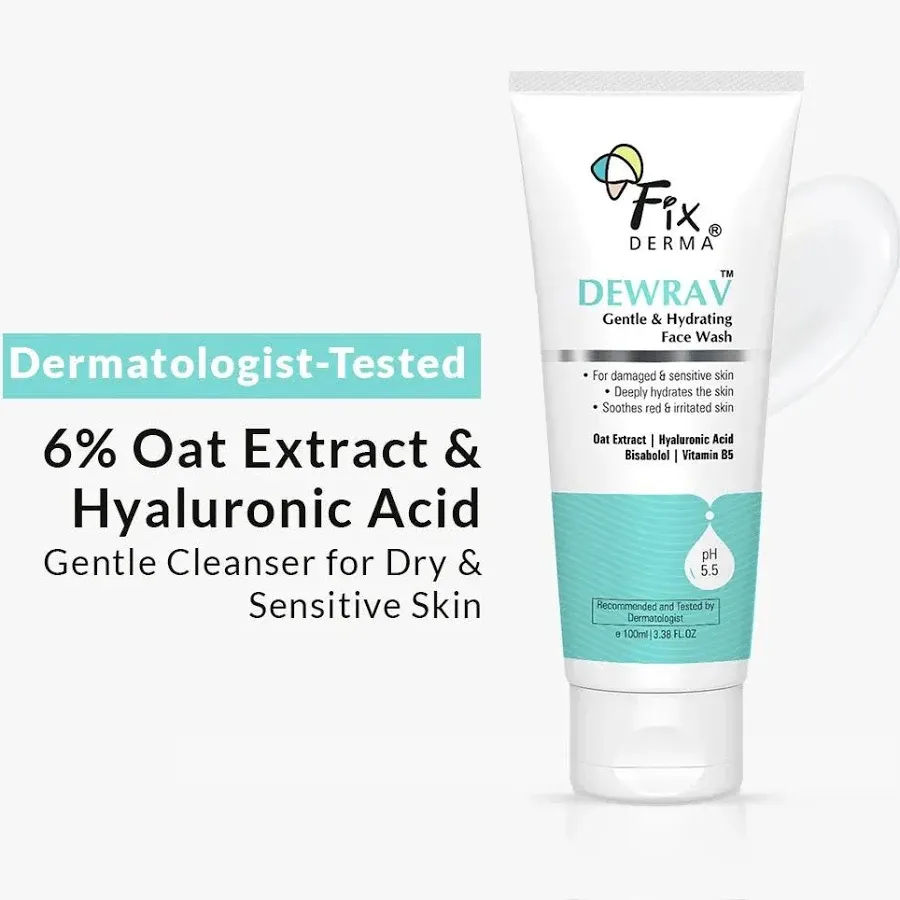directLink: https://www.beautybumble.com/products/fixderma-dewrav-gentle-hydrating-face-wash-with-6-oats-extract-hyaluronic-acid-vitamin-b5-bisabolol-soothes-irritated-skin-provides-hydration-face-cleanser-for-sensitive-dry-to-normal-skin-100ml?variant=47347446448360&country=IN¤cy=INR&utm_medium=product_sync&utm_source=google&utm_content=sag_organic&utm_campaign=sag_organic&srsltid=AfmBOoqLjm62ySqT6BExFr1UrxvWcua0jRNfBnxJy9_HNdqb5aqko_6hD0g