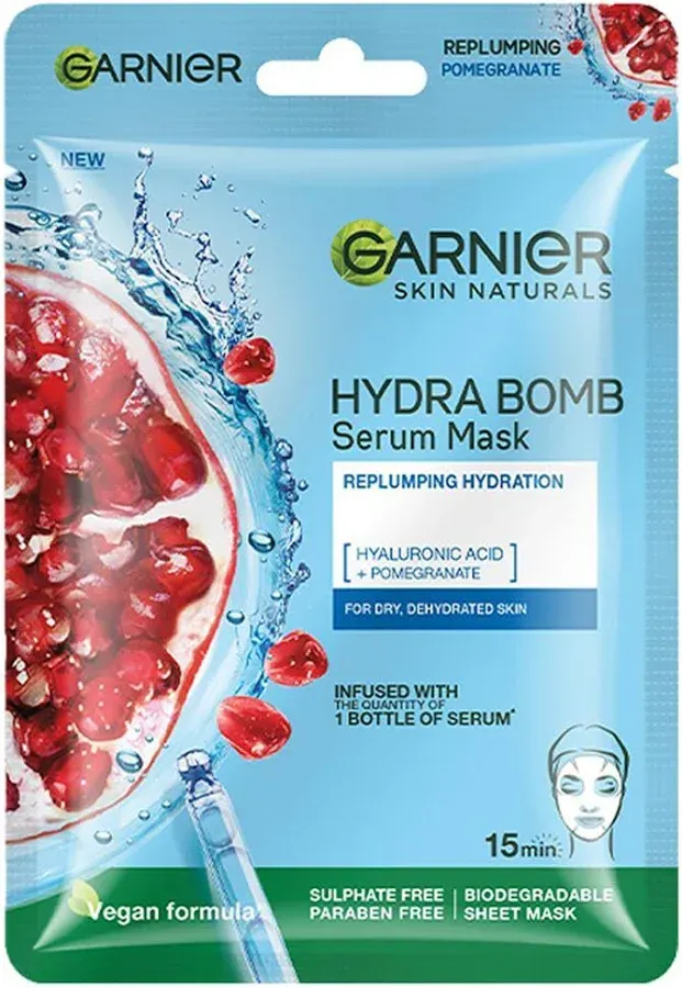 content: This new Garnier skin naturals hydra bomb hydrating sheet mask is so hydrating and nourishing as it contains hyaluronic acid which retains the moisture of skin. It makes skin instantly rehydrated and making complexion more radiant. Best suitable for dry and dehydrated skin as it is infused with the quantity of 1 bottle of serum. Seriously a great amount of serum.