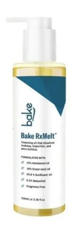 title: Bake Cosmetics BAKE RxMelt Cleansing Oil Removes Waterproof Makeup, SPF & Pore Buildup with 15% Hempseed & 0.5% Bakuchiol 100ml