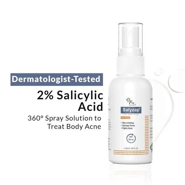 title: Fixderma 2% Salicylic Acid Salyzap Body Acne Spray For Acne on Back, Shoulders, Neck & Chest 50ml