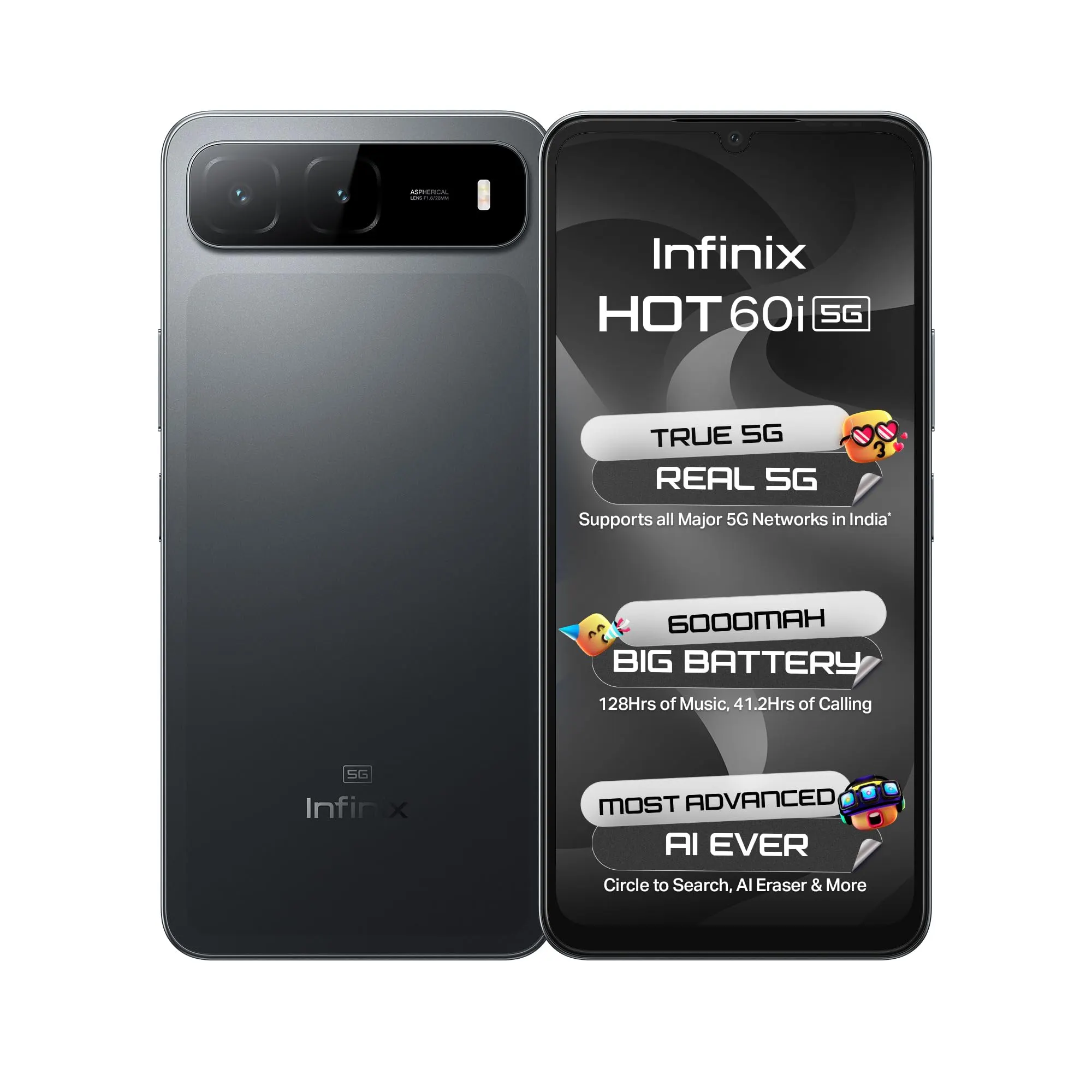 title: Infinix HOT 60i 5G (Sleek Black, 4GB RAM, 128GB Storage) | True 5G (Works On Jio, Vi, Airtel)|6000mAh Biggest Battery|Most Advanced Infinix AI- AI