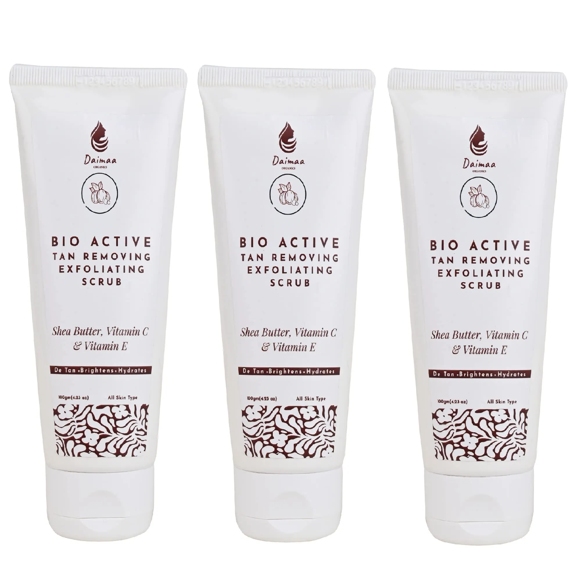 content: The scrub is formulated with Vitamin C, known for its brightening properties, and Shea Butter, which provides hydration and nourishment to the skin.