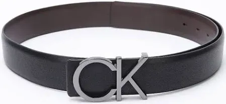 title: Calvin Klein Printed black Leather reversible Belts, Black (105)