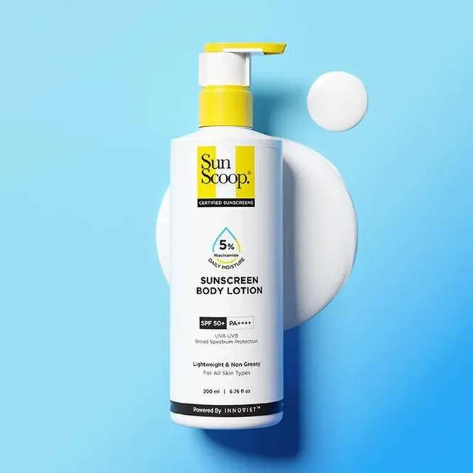 title: SunScoop 5% Niacinamide Sunscreen Daily Moisture Body Lotion SPF 50+ PA++++ | 24-Hours Moisturization | Smoothens the Skin - 200 ML