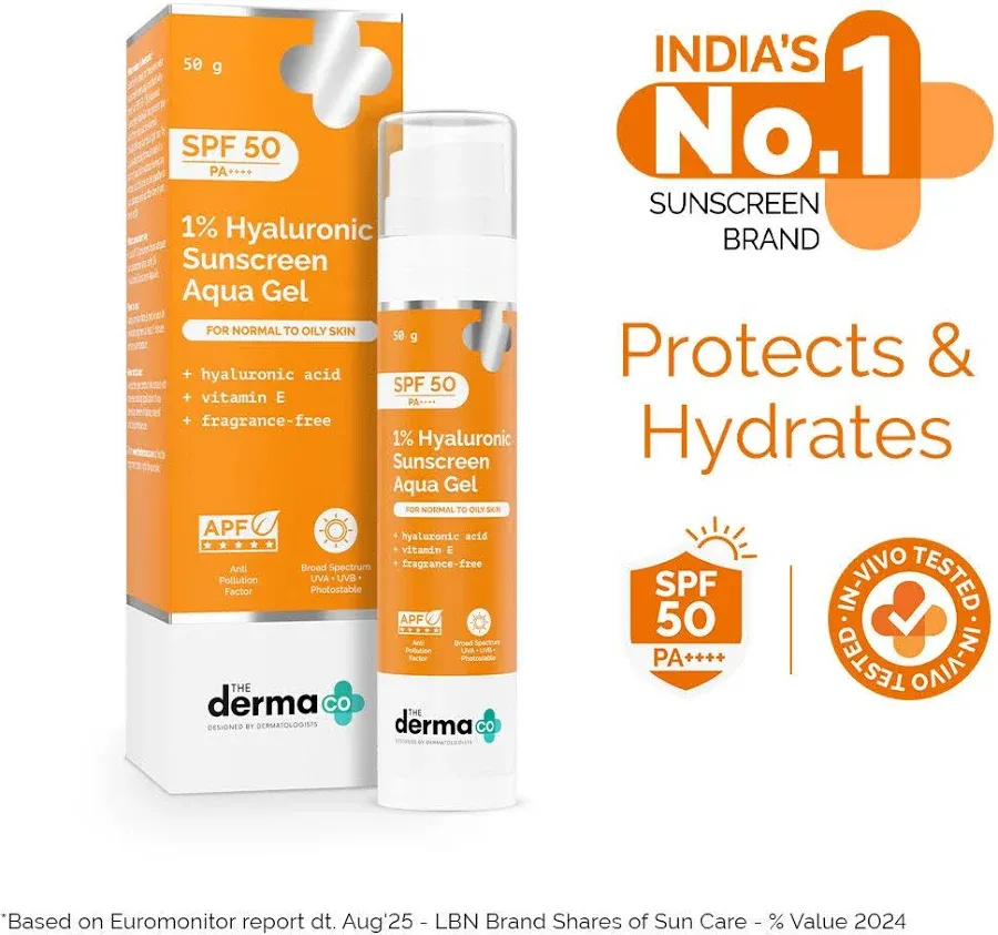 link: https://www.nykaa.com/the-derma-co-1percent-hyaluronic-sunscreen-aqua-gel-spf-50/p/10786853?ptype=product&skuId=2777158&srsltid=AfmBOoqg3soLEhRdRytgvOMqlmMH7Dw1VsIbp7sR30-Pa6rT4O2lQfncpB8