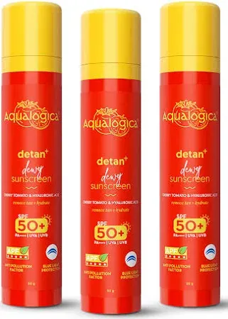 snippets: aqualogica detan dewy sunscreen spray offers spf 50 protection with a lightweight nongreasy formula it hydrates the skin leaves a dewy finish and helps reduce tan easy to apply its great for daily sun protection