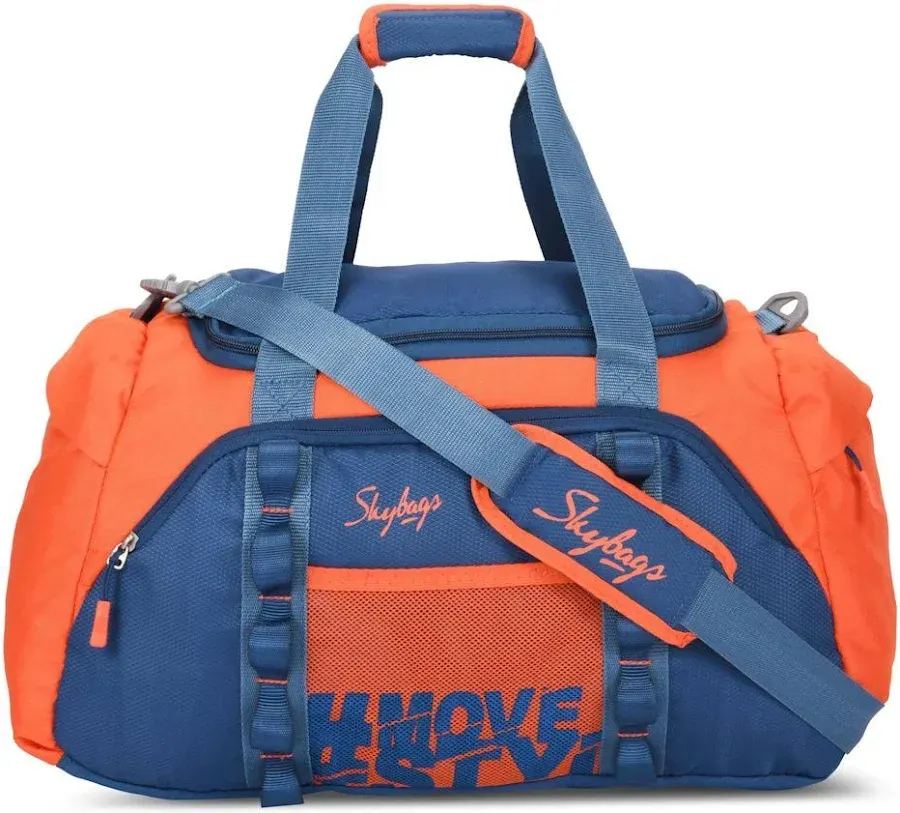 title: Skybags Hustle Orange & Blue Small Duffle Bag