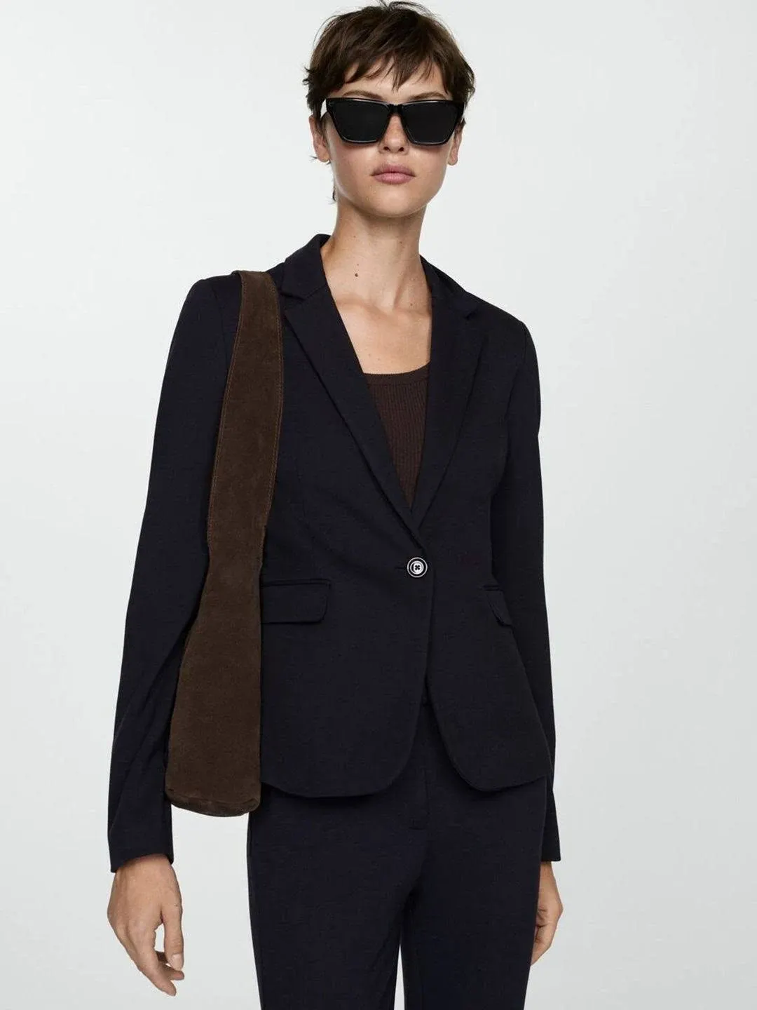 widgets 4: queries: What fabric is this MANGO blazer made of?, Can I wear this blazer casually?, Are other colors available in this style?, What's the return policy on this blazer?
