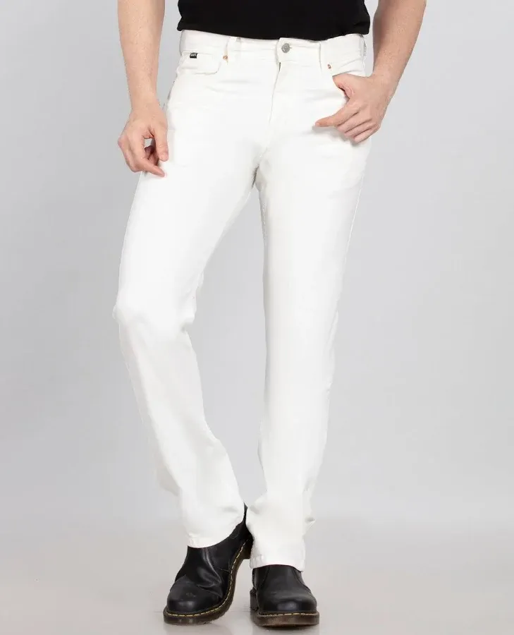 title: Pure White Non-Stretch Denim - Straight Fit Jeans Sale