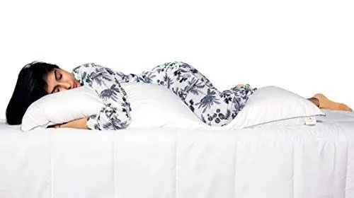 title: SleepyCat Microfiber Cuddle Pillow with Cover for Body Support and Used During Pregnancy (50x19 inches, White Pillow and Grey Cover)