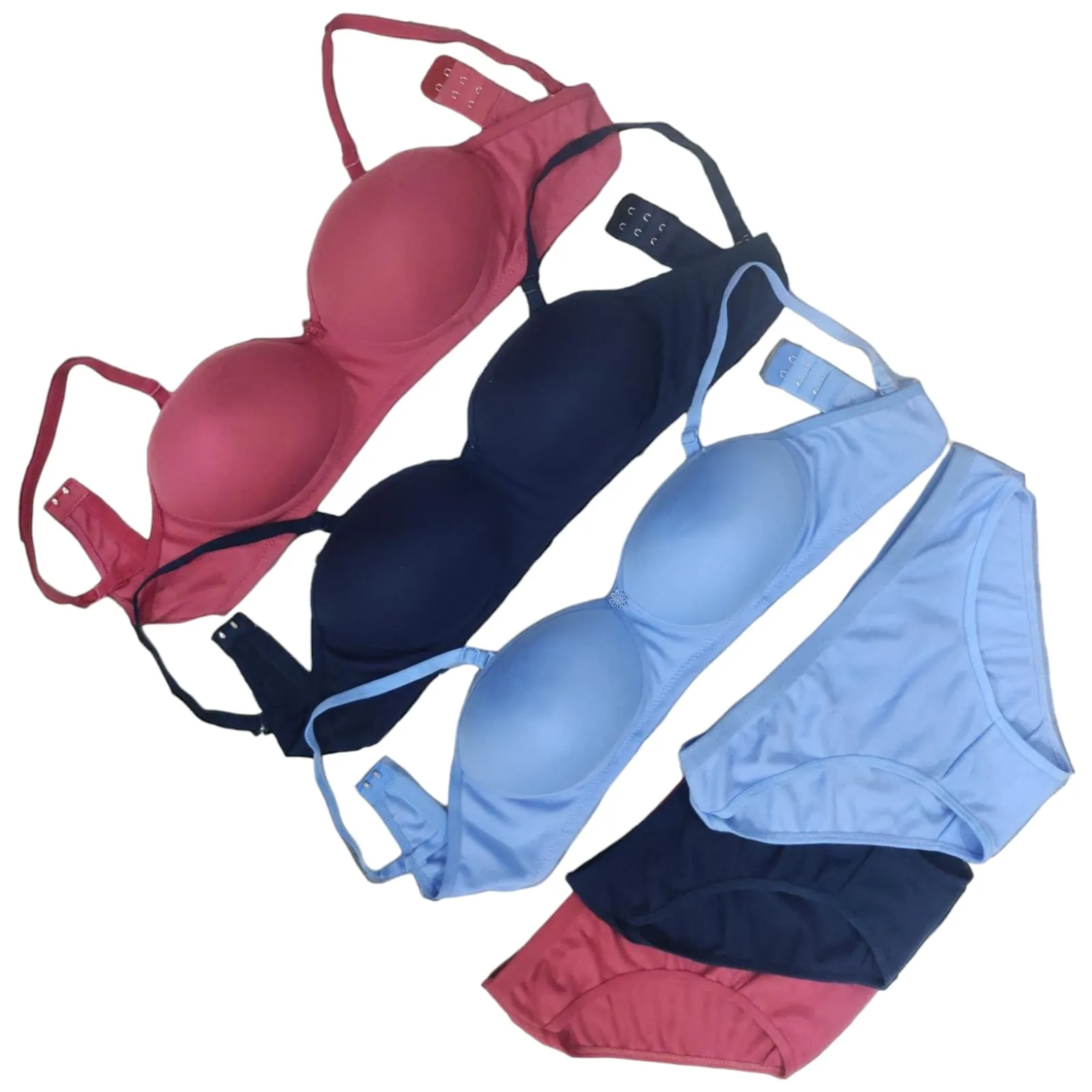 title: Women's Cotton Blend Lightly Padded Wire Free Bra Panty Lingerie Set Honeymoon Half Croverage (Pack of 3)