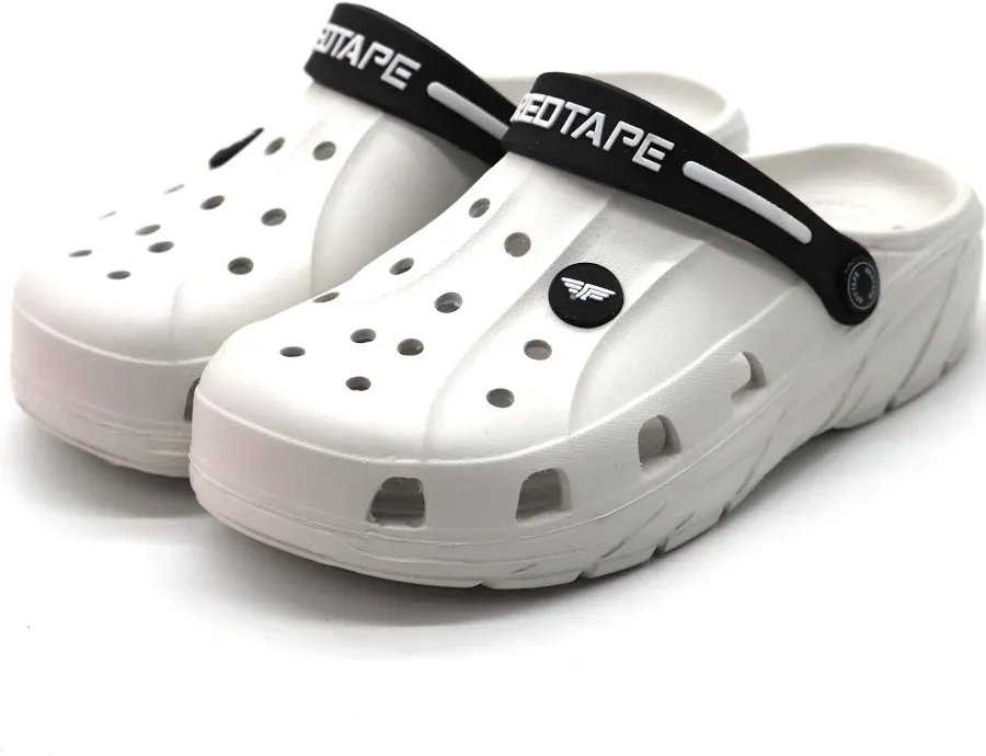 detailedReviews: detailedReviews 1: content: Good quality and a perfect fit! They are waterproof and comfortable for long wear, with a decent 7/10 grip. Disappointed they didn't come in a box. Quality-wise, they’re identical to ₹300 market clogs—you’re mostly paying for the Red Tape brand. Still, if you prefer the convenience of ordering online, they’re a great buy. Go for it!