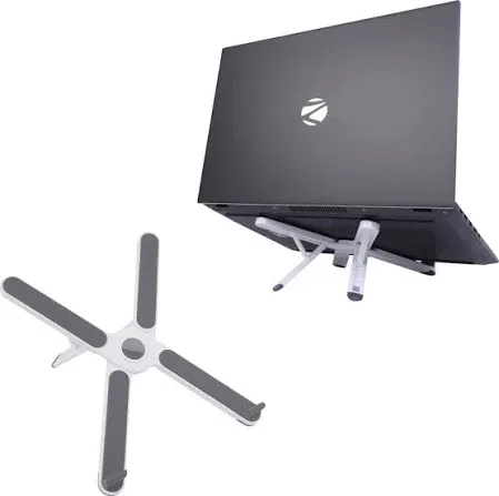 title: Zebronics ZEB-NS1200 Laptop Stand Laptop Stand with X Foldable Design, 7 Adjustable Levels, Anti-Slip Silicone Rubber Pads, Supports up to 17-inch