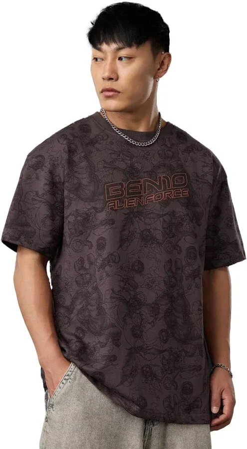 title: The Souled Store Ben 10: Aliens Men and Boys Short Sleeves Round Neck Brown Graphic Printed Cotton Oversized T-Shirts