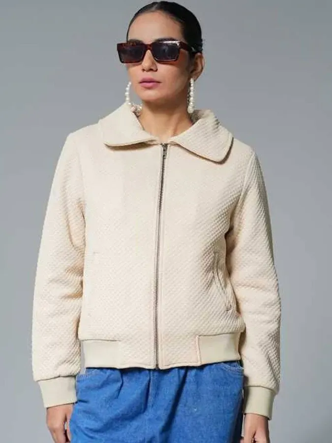 title: Fort Collins Women Spread Collar Self Design Bomber Jacket