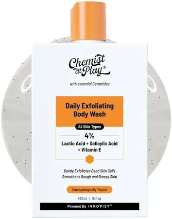 detailedReviews 2: content: I absolutely love this Chemist At Play Exfoliating Body Wash.it has made my skin so much softer and smoother in just a few uses.The combination of Lactic Acid, Salicylic Acid, and Vitamin E works perfectly to remove dead skin and tan without drying my skin out.It has a gentle formula, a pleasant fragrance, and is completely Paraben & SLS free, which I really appreciate.My skin feels clean, refreshed, and glowing after every shower.Definitely one of the best exfoliating body wash.