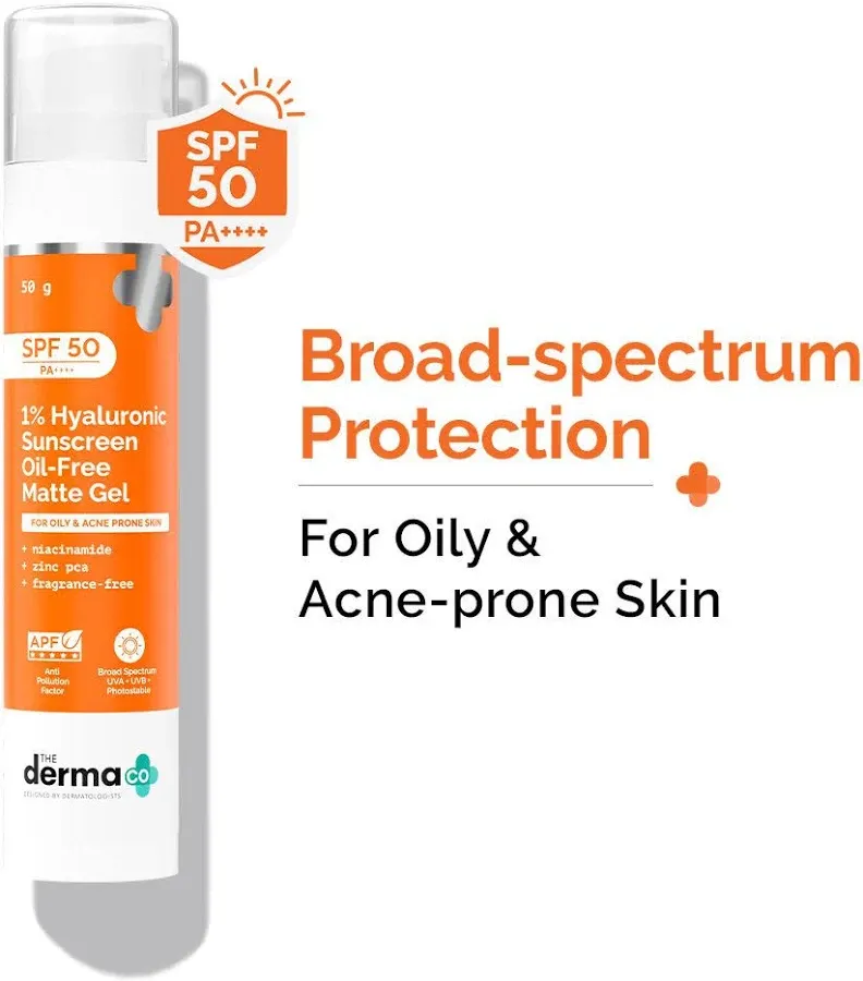 title: The Derma Co 1% Hyaluronic Sunscreen Oil-Free Matte Gel SPF 50 PA++++ | For Oily, Acne-Prone Skin | Lightweight Texture | No White Cast | Broad
