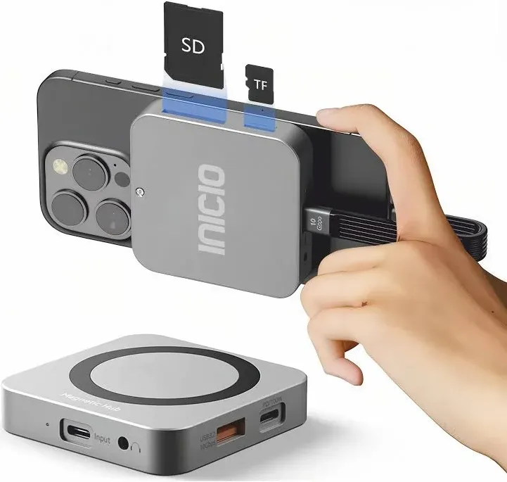 snippets: The INICIO Magnetic M.2 2230 NVMe SSD Enclosure is a versatile 8-in-1 hub. It supports M.2 2230 SSDs and features Mag-Safe, USB C 3.2 Gen2, 4K HDMI, SD/TF card readers, and PD100W charging.