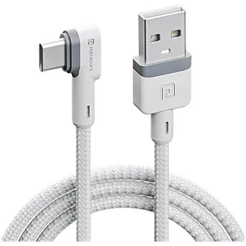 snippets: the brand name is portronics you can see the color is great it's a type c cable USB type A to type c cable the MRP mentioned on the box is $699 whereas I have purchased it for 99 rupees online, as you can see here this is a l connect L-shaped pin L-shaped type c pin on the USB type A it's normal Ty USB type a pin as you can see here but the type C pin is L-shaped which can which is useful in uh few uh things I'll show you that, as you can see the cable is of good quality it's just 99 rupees for the price that we are purchasing it for $99 it is a good quality cable and it's a l connect and the ports are also very good it's 1.2 m in length it's uh nylon braided uh cable uh so it's very quality cable