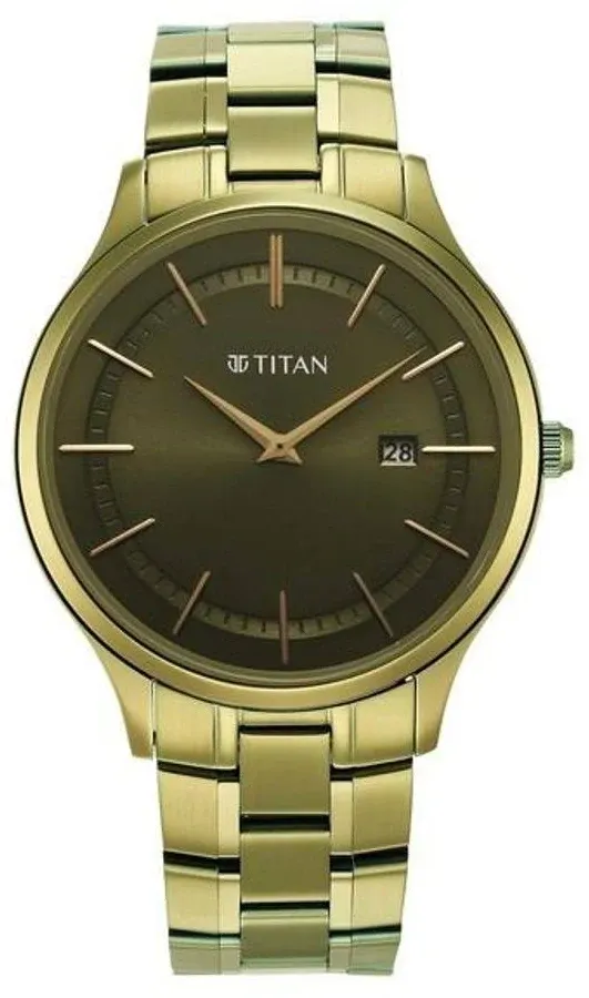 title: Titan Classique Slimline Green Dial Analog with Day and Date Stainless Steel Strap watch for Men