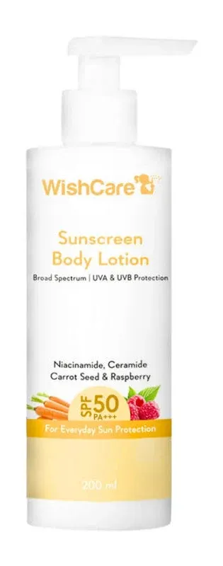 detailedReviews: detailedReviews 1: content: THE BEST BODY SUNSCREEN! High SPF, No White Cast, & Moisturizing! I have finally found my holy grail body sunscreen! The WishCare Sunscreen Body Lotion is an absolute winner, especially for daily use. With SPF 50++PA+++} (broad spectrum UVA & UVB protection), I feel completely protected without the heavy, sticky feeling most high-SPF lotions leave behind. It has a wonderful, lightweight texture that absorbs quickly into the skin with zero white cast, making it perfect for all skin tones. The inclusion of skincare heroes like Niacinamide and Ceramide means it doesn't just protect—it actively hydrates and supports your skin barrier, which is a huge bonus. Plus, the extracts like Carrot Seed and Raspberry are known for their antioxidant properties. It leaves my skin feeling soft and moisturized, not greasy or suffocated. I use this 200ml pump bottle every single day, and I highly recommend it for anyone needing a reliable, non-sticky, and genuinely protective sunscreen. A must-buy for everyday sun care!