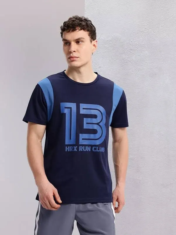 title: Hrx By Hrithik Roshan Printed Men Crew Neck Blue T-shirt