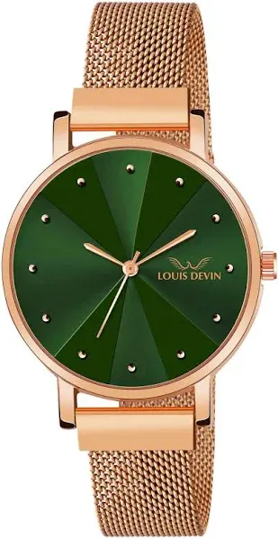 articleSummary: The LOUIS DEVIN Women's Analog Mesh Chain Wrist Watch is described as a blend of grace and precision. It features a sleek mesh chain and is available with black, blue, or rose gold dials. The watch is presented as an elegant accessory suitable for both casual and formal occasions, adding effortless charm to any look.