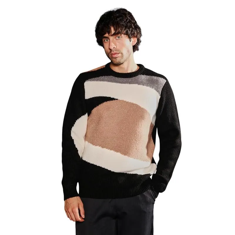 items: items 1: content: The abstract jacquard pattern on this sweater offers a unique visual appeal that stands out from plain or common designs, making it a good choice for those looking to add a distinctive touch to their casual outfits.