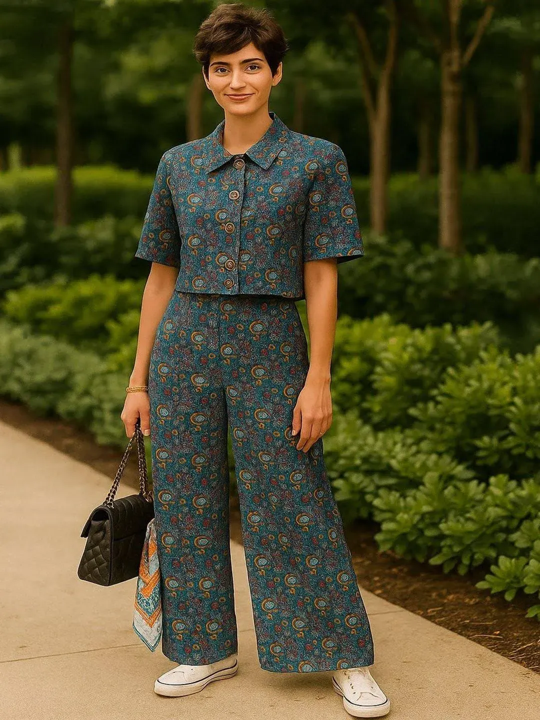 flareLink: http://www.myntra.com/Co-Ords/GAB/GAB-Geometric-Printed-Spread-Collar-Pure-Cotton-Shirt-With-Trousers/36367806/buy