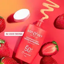 detailedReviews 12: content: This Dot & Key Strawberry Dew Tinted Sunscreen SPF 50+ PA++++ in shade Porcelain 01 has a lightweight dewy texture that blends smoothly into the skin. It ...