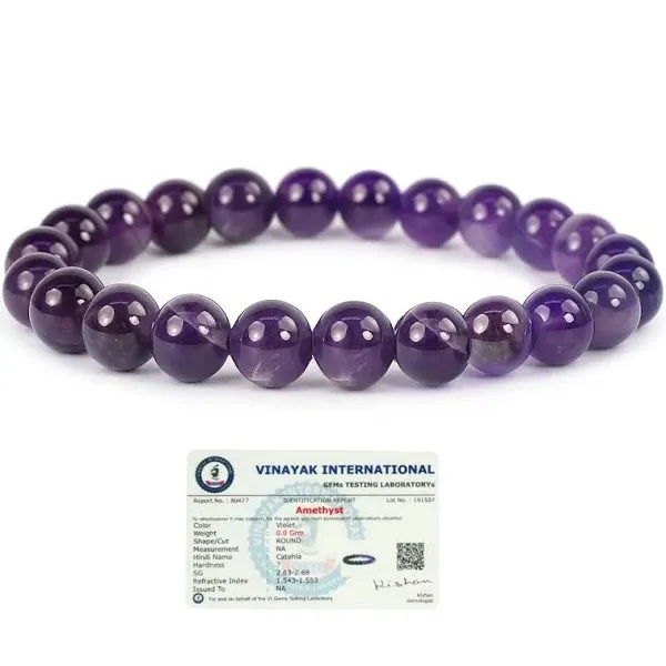 detailedReviews: detailedReviews 1: content: I got this Amethyst bracelet today. The beads are good and the darkness varies as mentioned in the product information. Received the Lab certification as mentioned in the product and by scanning the lab card the report appears as mentioned on the lab card.