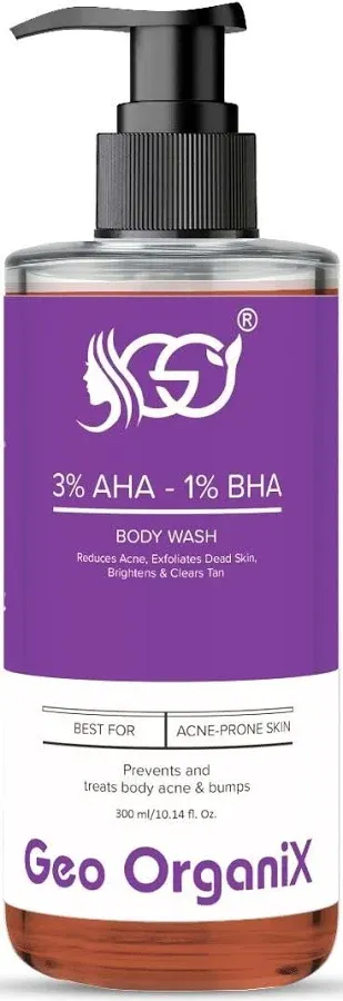 articleSummary: This review snippet mentions a similar product, Deconstruct's Exfoliating Body Wash with 1% AHA and 2% BHA, noting its positive reception for treating body acne and improving skin smoothness, which is a comparable benefit to the Geo OrganiX product.
