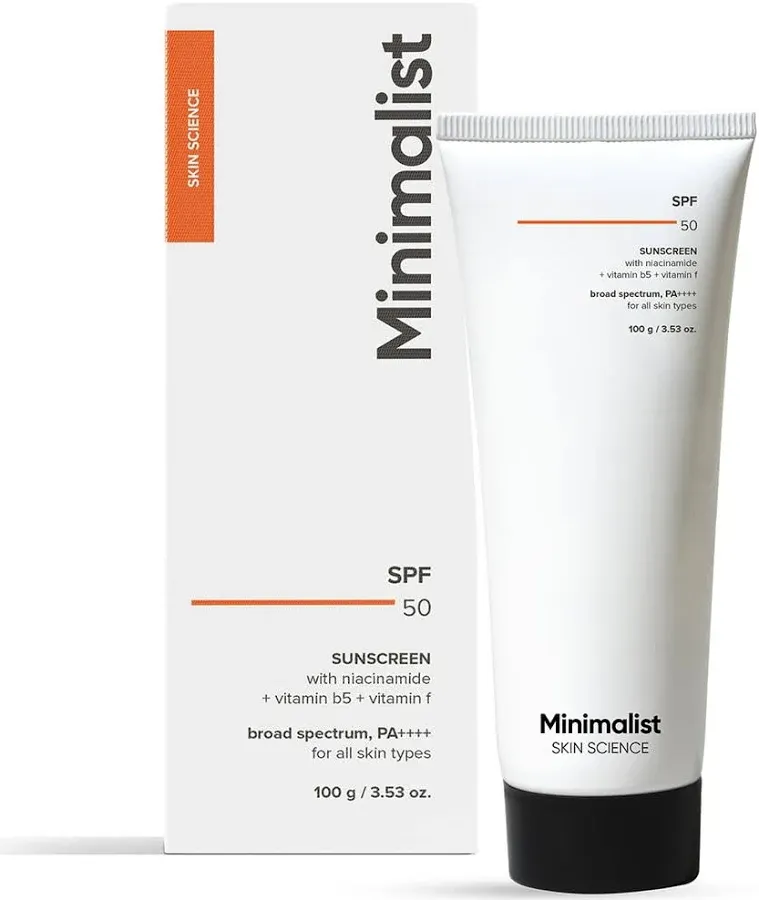detailedReviews 3: content: I’ve been using the Minimalist SPF 50 sunscreen for a few weeks now, and I’m really impressed. It’s lightweight, non-greasy, and leaves no white cast which is a huge plus! The formula is enriched with niacinamide, vitamin B5, and vitamin F, which makes it feel more like a skincare product than just a sunscreen.