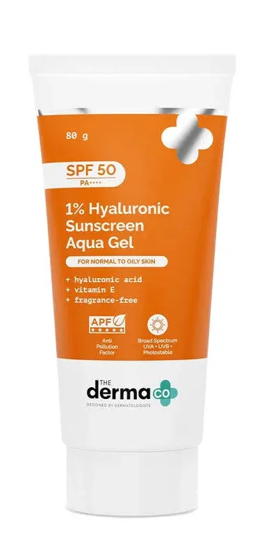 title: The Derma Co 1% Hyaluronic SPF 50 PA++++ Sunscreen Aqua Gel 80 g