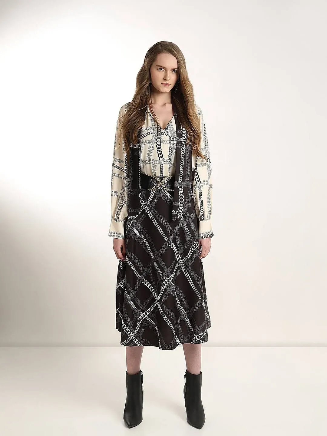 items 1: articleHeading: Black Chain Print Co-ord Set Skirt S