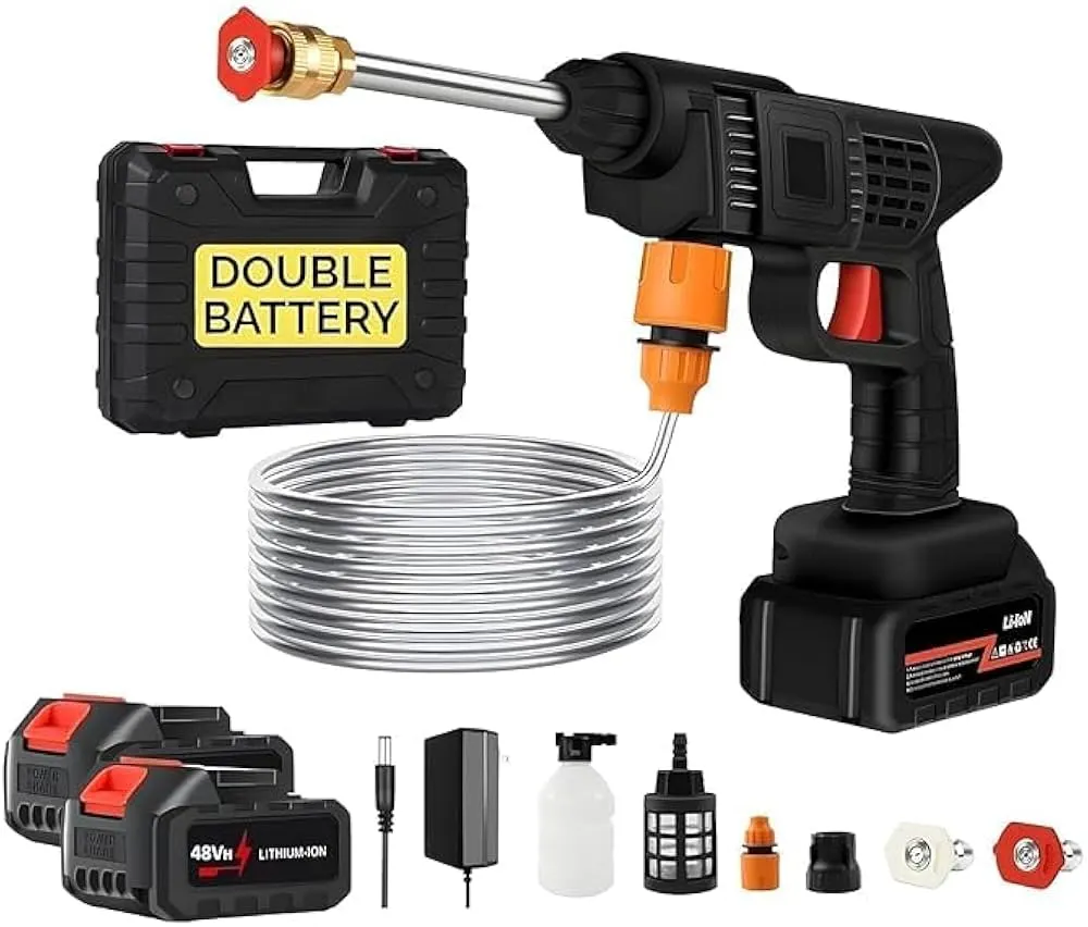 title: (Double Battery) Cordless Portable Wireless Pressure Washer Gun 48v 12000mah High Pressure Water Gun for Car Wash & Bike Washing Cleaning Adjustable