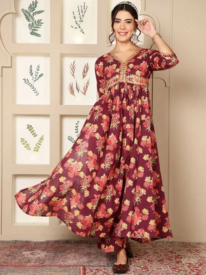 stores 1: affiliateLink: https://tjzuh.com/g/s56leml8ck1cc9d809ea23d5247706/?ulp=http://www.myntra.com/Kurta-Sets/KIMAYRA/KIMAYRA-Floral-Printed-Regular-Anarkali-Kurta-with-Palazzos/31279018/buy