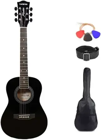 title: Kadence Frontier 34 Inch Rose Wood Guitar For Kids, Travel Guitar For Adult Acoustic Guitar With Set Of Strings, Strap, Picks And Bag (Black Guitar)