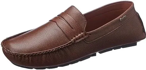 title: Hushpuppies Men's Casual Loafers - Tan Leather Slip-On with Decorative Strap for Comfort