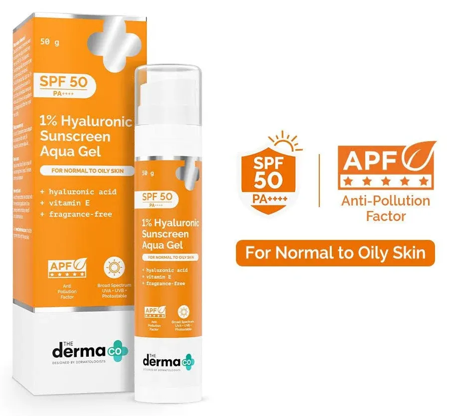 title: 1% Hyaluronic Sunscreen SPF 50 Aqua Gel, PA++++ By The Derma Co.