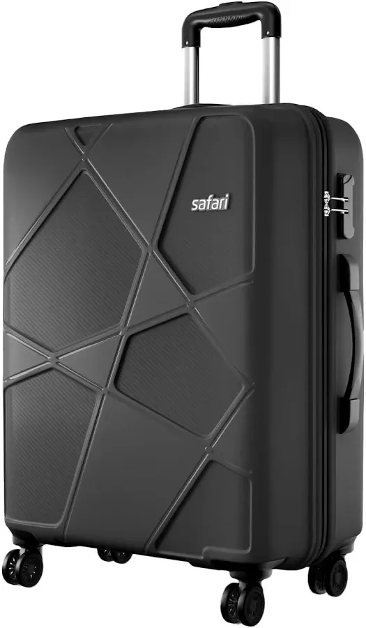 snippets: Safari Pentagon Pro 8 Wheels Checkin Trolley Bag, Hard Case Polypropylene 360º Wheeling Luggage for Men & Women, Suitcase for Travel, Black, 66Cm Medium Size
