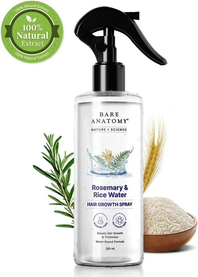 detailedReviews 7: content: "I've been using the Bare Anatomy Rosemary & Rice Water Hair Growth Spray for about a month now and I'm genuinely impressed. My hair fall has noticeably ...