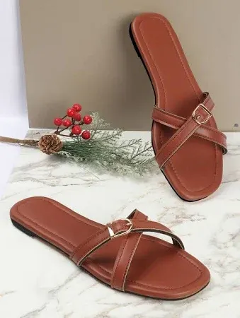 title: ADIVER Buckle Detailed Open Toe Flats (8) by Myntra