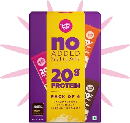 detailedReviews 3: content: Yoga Bars are very delicious, crunchy and fruity in taste. It has a very good chocolate flavor and can be used as on-the-go breakfast food. It does not have any preservatives in it, making it a bit more healthy food product. Each Breakfast Protein bar is made up of Whole grains, seeds and nuts which gives you plenty of fibre, carbs, protein, healthy fats with natural vitamin and minerals. Each packet comes with 8g Protein, 7g fibre and 10g whole grain nutritional contents. It's best alternative of our routine breakfast without calories and all. Good source of protein in a pleasant taste with no Sugar, an alternative for protein bars post work out is here. A 50 gram bar have 8 gm of protein. The pack has assorted flavors. Total 6 bars : 2 Blueberry Pie, 2 Apricot and Fig, 1 Apple Cinnamon, 1 Almond and Coconut - 50g Bar Each. Although it is mention as breakfast bar, its a good alternative for mid meals too. The Yoga Protein bars are made to meet the protein needs for people among all the age groups for men and women both.