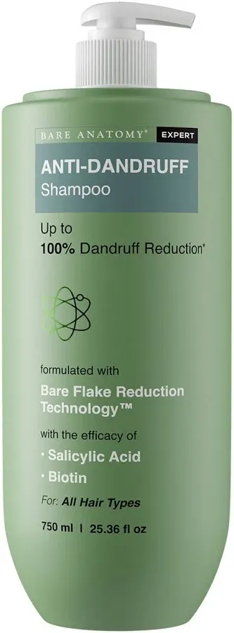 detailedReviews 6: content: The Bare Anatomy Expert Anti-Dandruff Shampoo is a science-backed, gentle yet effective solution for those dealing with dandruff. It is formulated with Salicylic Acid, which helps exfoliate the scalp and reduce flakes, and Biotin, which supports hair health and strength. The shampoo claims up to 100% dandruff reduction and is free from sulphates and parabens, making it safe for regular use on all hair types. It has a mild, pleasant fragrance and doesn’t cause dryness or irritation like some harsher anti-dandruff shampoos. While results may not be instant, consistent use over 2–3 weeks shows visible improvement in scalp condition. However, people with dry hair might need to pair it with a moisturizing conditioner, as it doesn’t provide intense hydration. Overall, it’s a good option for anyone looking for a dermatologically tested, non-irritating shampoo that tackles dandruff while also caring for the hair.