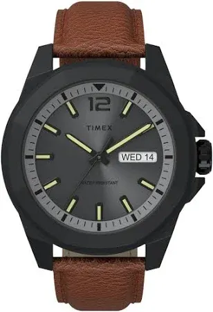 title: Timex TW2U82200UJ Essex Ave Day-Date 44mm Leather Strap Watch