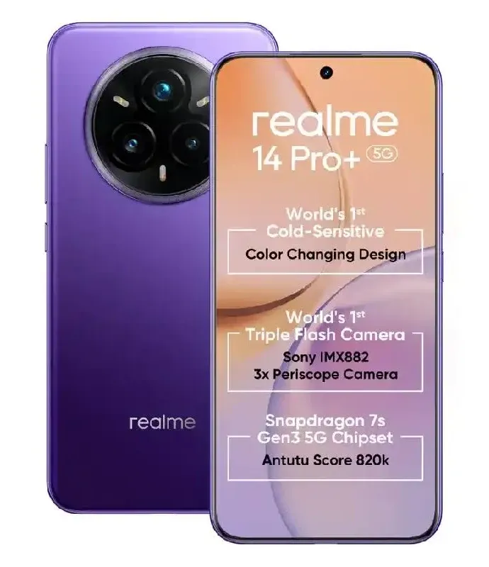 snippets: The Realme 14 Pro+ is powered by the Qualcomm Snapdragon 7s Gen 3 chipset, coupled with up to 12GB of LPDDR4X RAM and up to 512GB of UFS 3.1 storage.