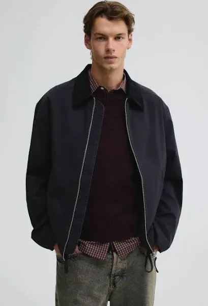articleSummary: Mentions zip closure as a feature in a similar cotton blouson jacket style.