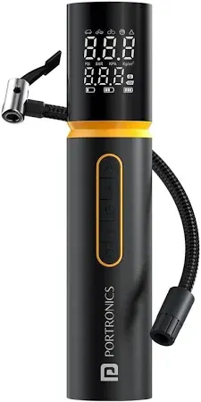 title: Portronics Vayu 5.0 Rechargeable Tyre Inflator (Fast Inflation; 3x 1500mAh Battery; Preset Modes; Digital Display; Flashlight Torch; for Car and Bike;
