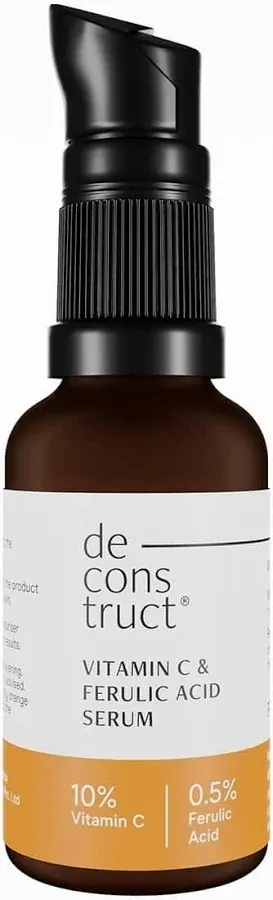 articleSummary: This YouTube video discusses the Deconstruct 10% Vitamin C Serum with Ferulic Acid, highlighting its benefits for brightening the skin, evening out skin tone, and reducing collagen breakdown. It is recommended for those seeking a brightening effect.